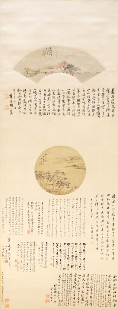 戴煕|湯貽汾作 者:戴煕(たいき)【1801-1860】作品名:平橋晩色図 扇面(へいきょうばんしょくず)形 状:軸形 質:紙本墨画淡彩法 量:15.5×48.8cm制作年:道光13年(1833)作 者:湯貽汾(とういふん)【1778-1853】作品名:松亭挹爽図(しょうていゆうそうず) 団扇形 状:軸形 質:絹本墨画淡彩法 量:26.4×26.4cm制作年:道光13年(1833) 戴煕|平橋晩色図 扇面湯貽汾|松亭挹爽図 団扇全図▲画像をクリックすると拡大表示